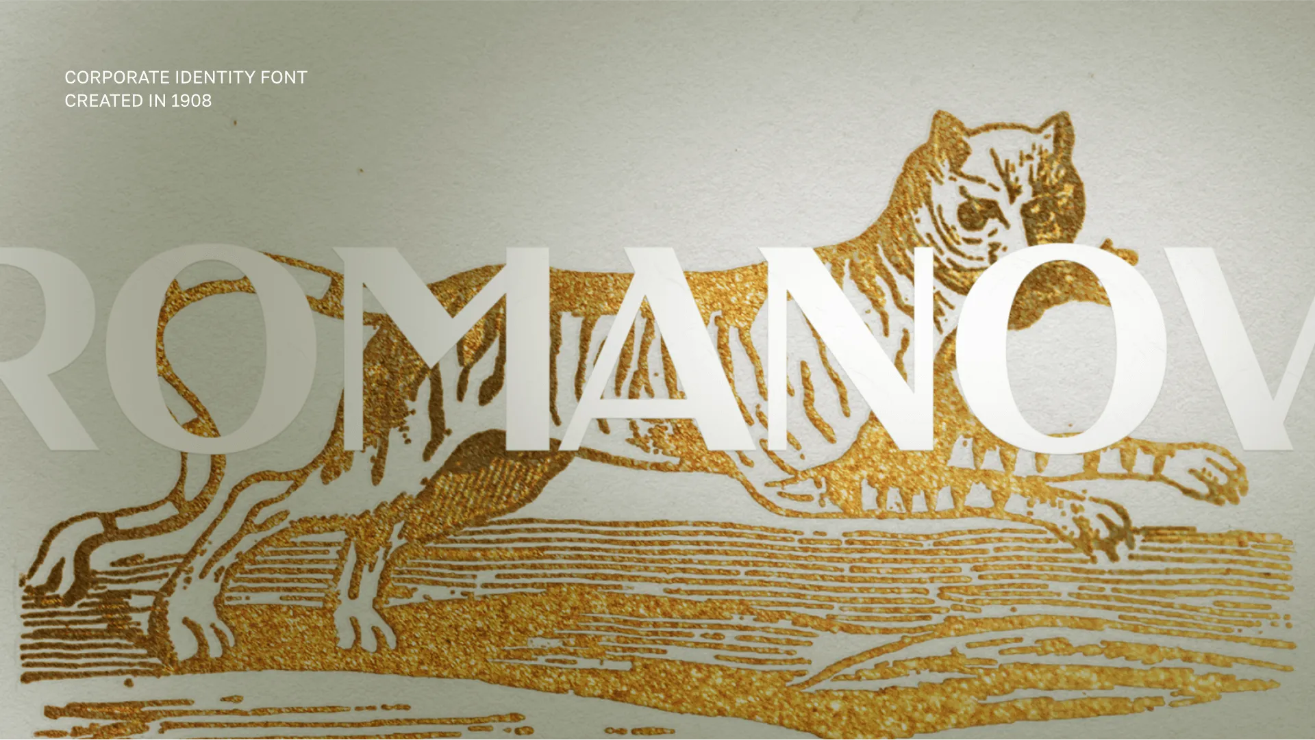 Для айденитики мы подобрали шрифт «Romanovsky», созданный на основе образцов каталога словолитного заведения Осипа Лемана в 1908 году.