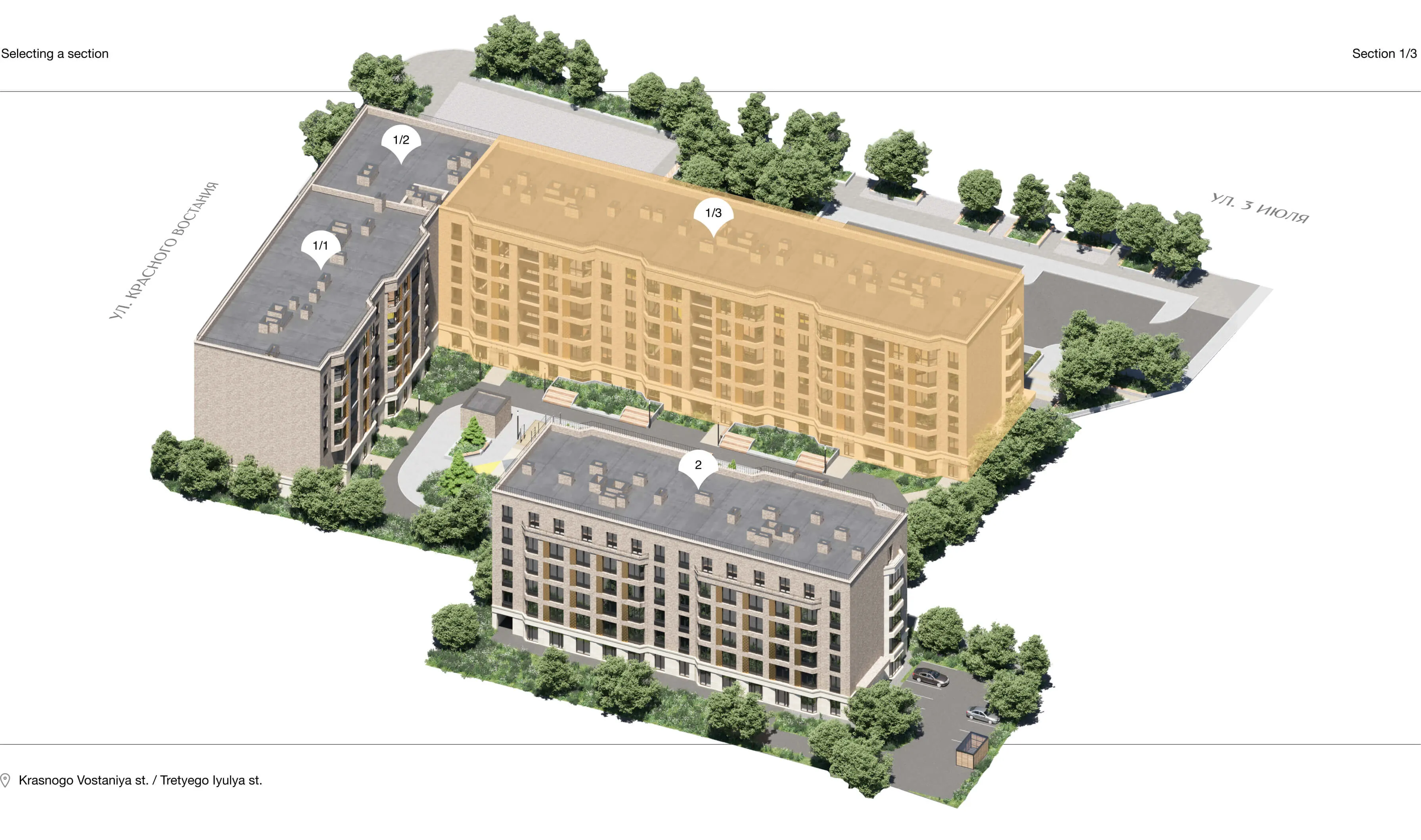 После ознакомления с историей создания и окружением дома мы переходим к просмотру документации и подробному просмотру планировок квартир и секций комплекса.