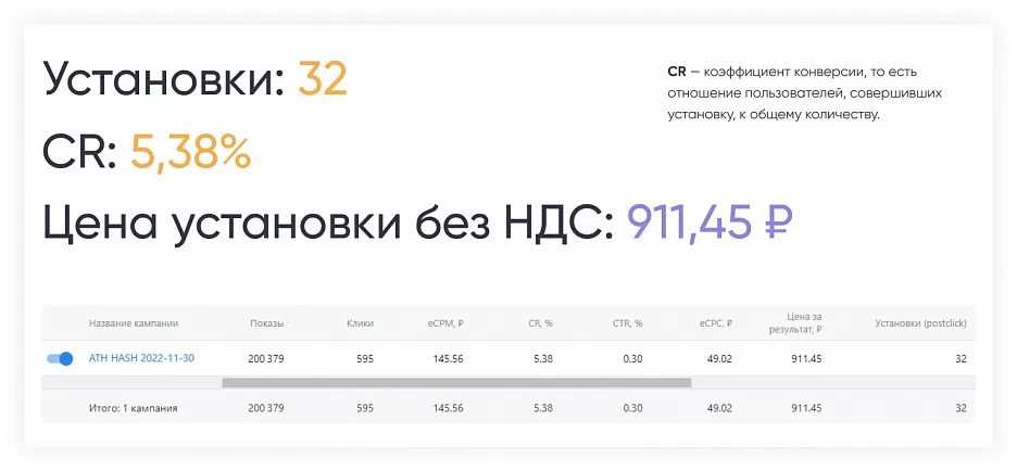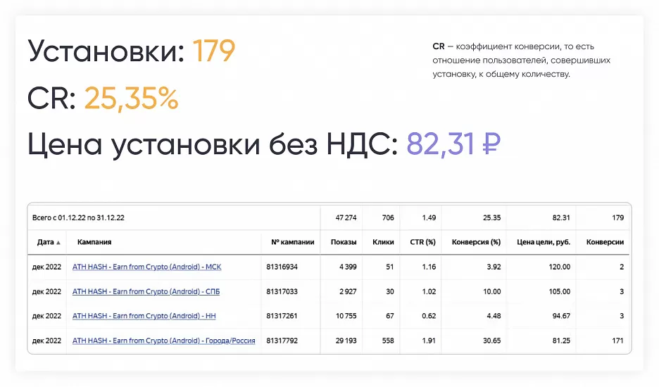 Стоит также отметить, что запуск рекламы в ВКонтакте пришелся на тот период, когда сервис отключил возможность настройки рекламы мобильных приложений в старом рекламном кабинете и выпустил данный инструмент в бета-версии в новом рекламном кабинете «VK Реклама». Без проблем не обошлось, новый кабинет то и дело выдавал ошибки, отклонял рекламу по непонятным причинам, и только благодаря оперативной поддержке наших агентских менеджеров из ВК нам удалось преодолеть все эти сложности и запустить рекламные кампании.