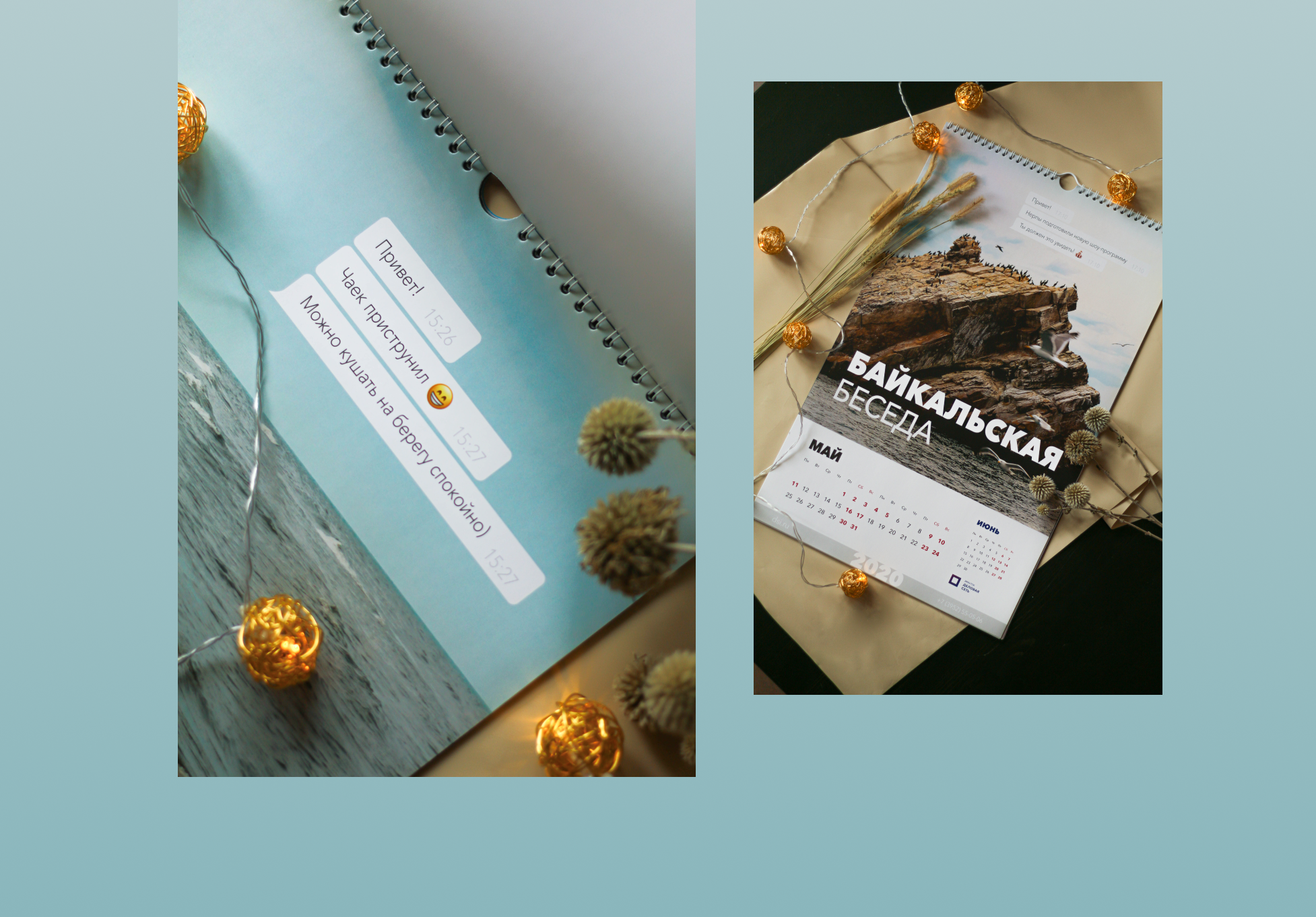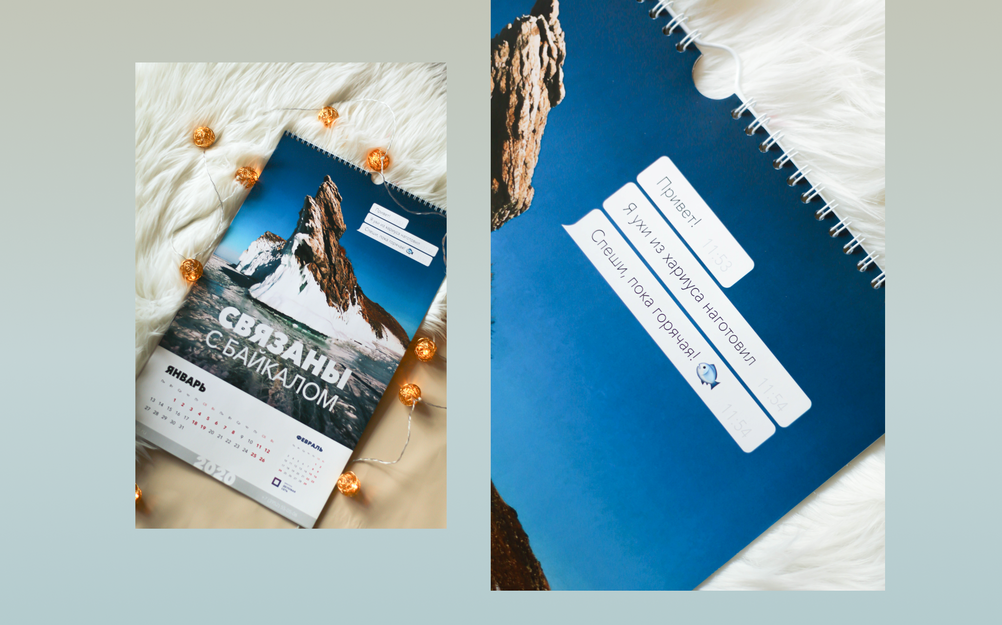 Задизайнили для «Деловая Сеть — Иркутск» календарь на 2020 год. Календарь почти волшебный: он объединяет коллег и клиентов беседами и зовет всех поехать на Байкал.
