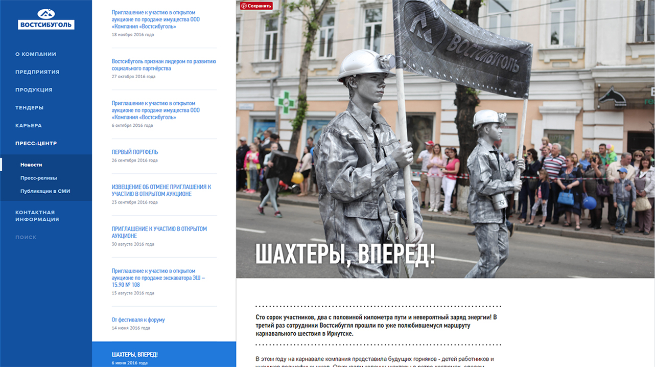Для крупнейшего угольного предприятия Восточной Сибири мы разработали удобный и современный корпоративный сайт