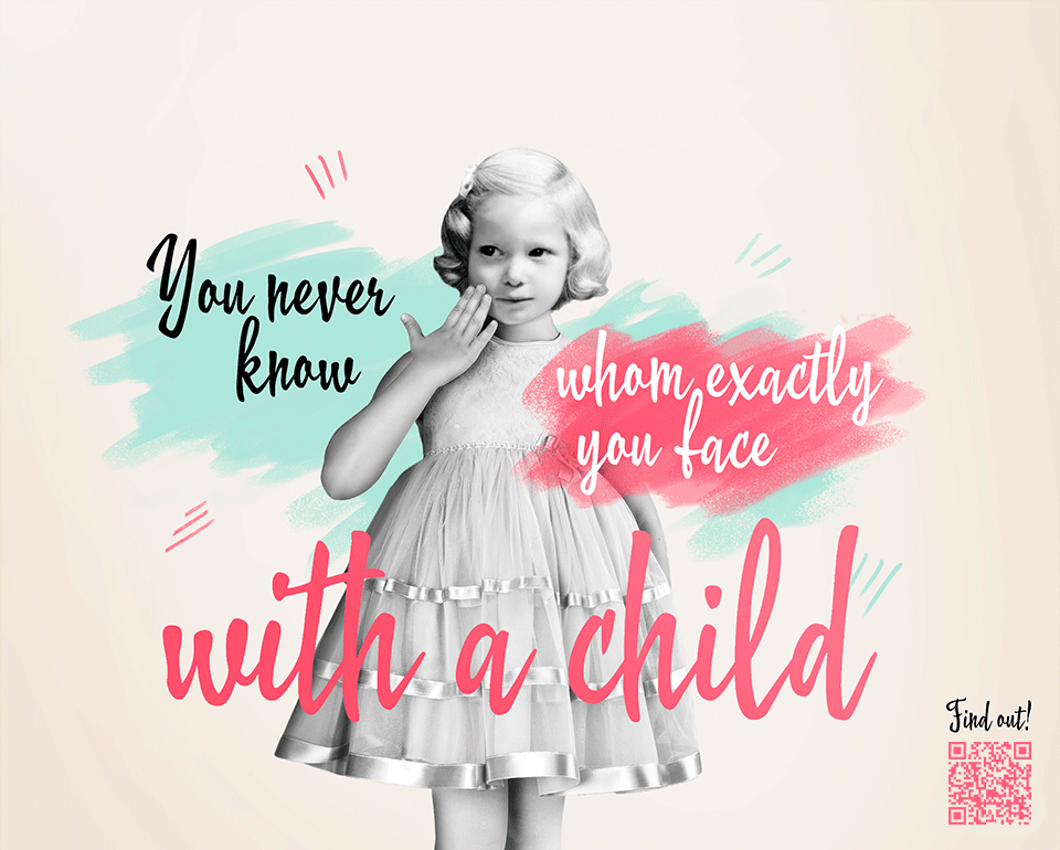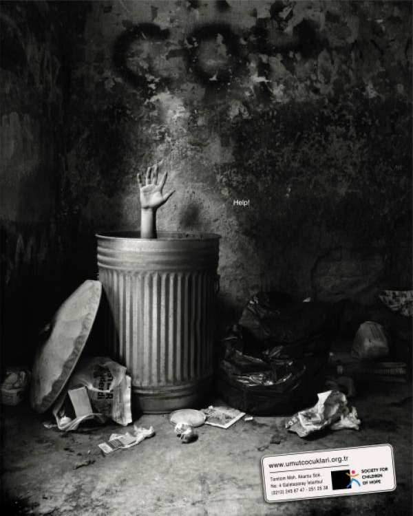Социальная реклама о детях изобилует негативными образами. Брошенные дети, голодные дети, дети, лишенные родительского внимания. Дизайнеры как правило используют мрачные изображения и полные драматизма лица.