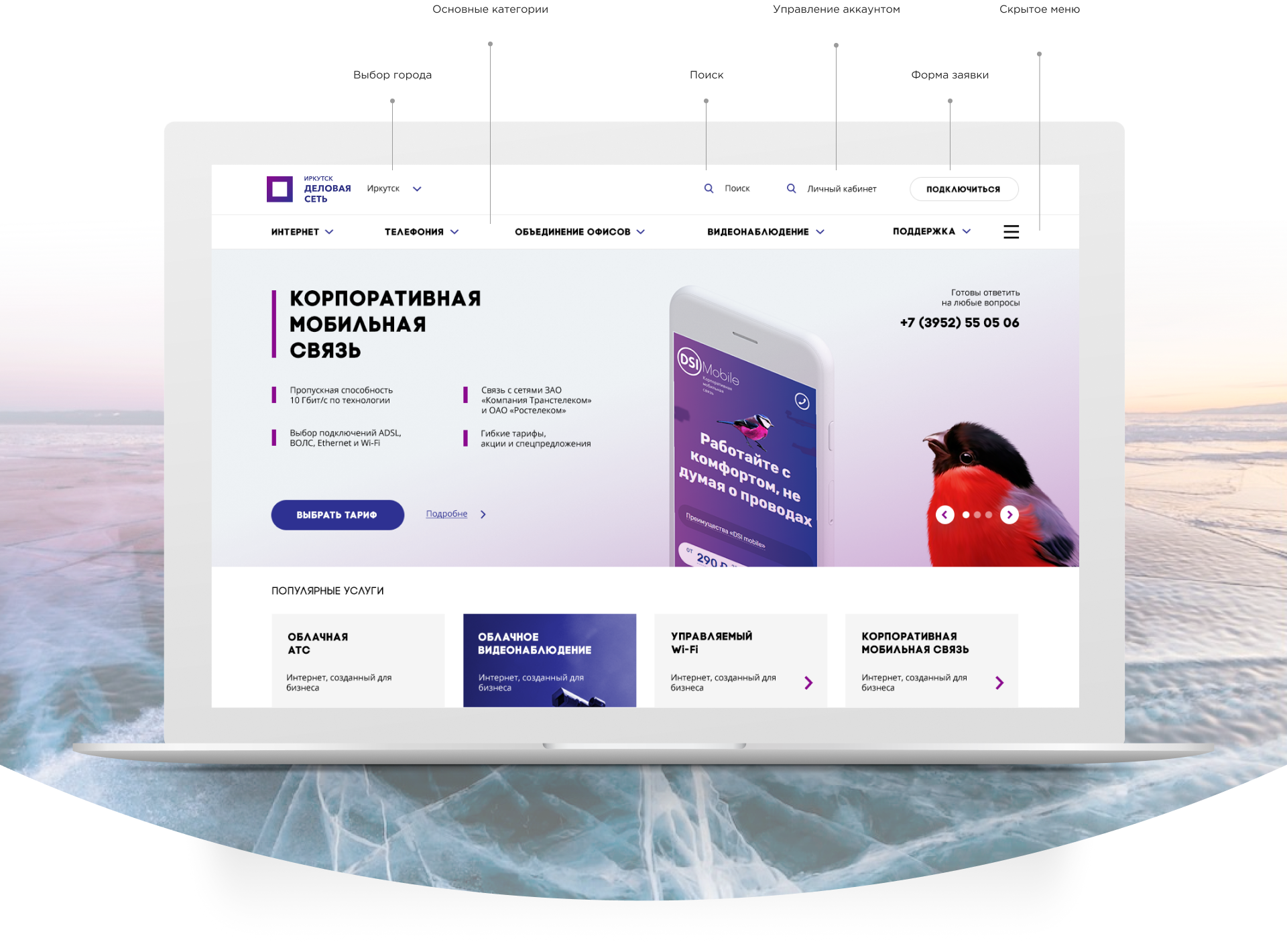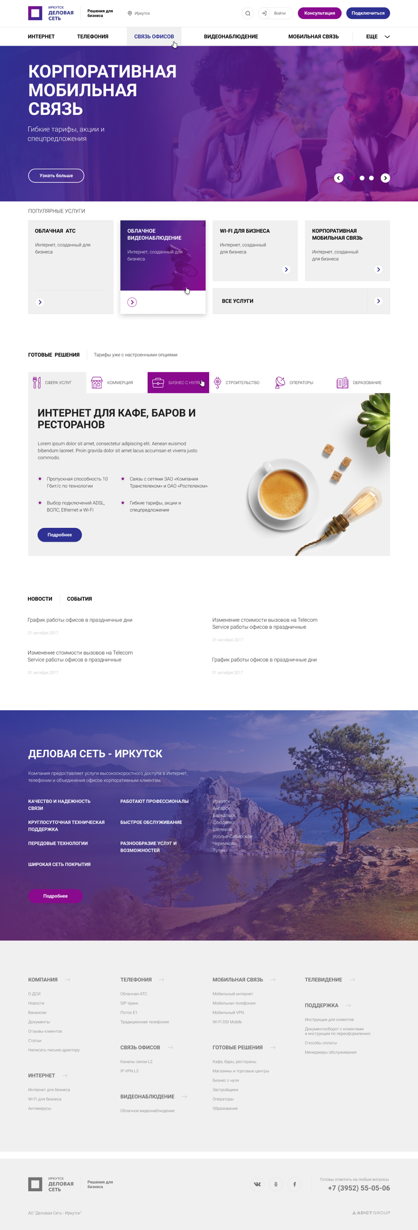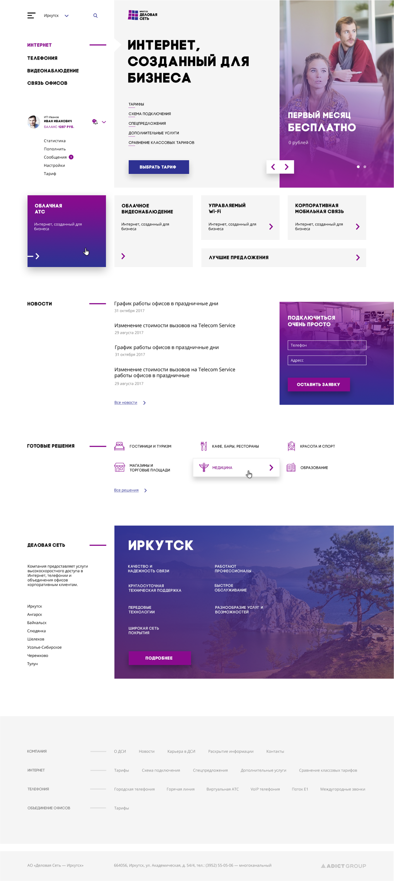 Сайт должен формировать имидж локальной компании. «Деловая Сеть — Иркутск» (ДСИ) — местный оператор с круглосуточной технической поддержкой и офисами обслуживания в Иркутской области.