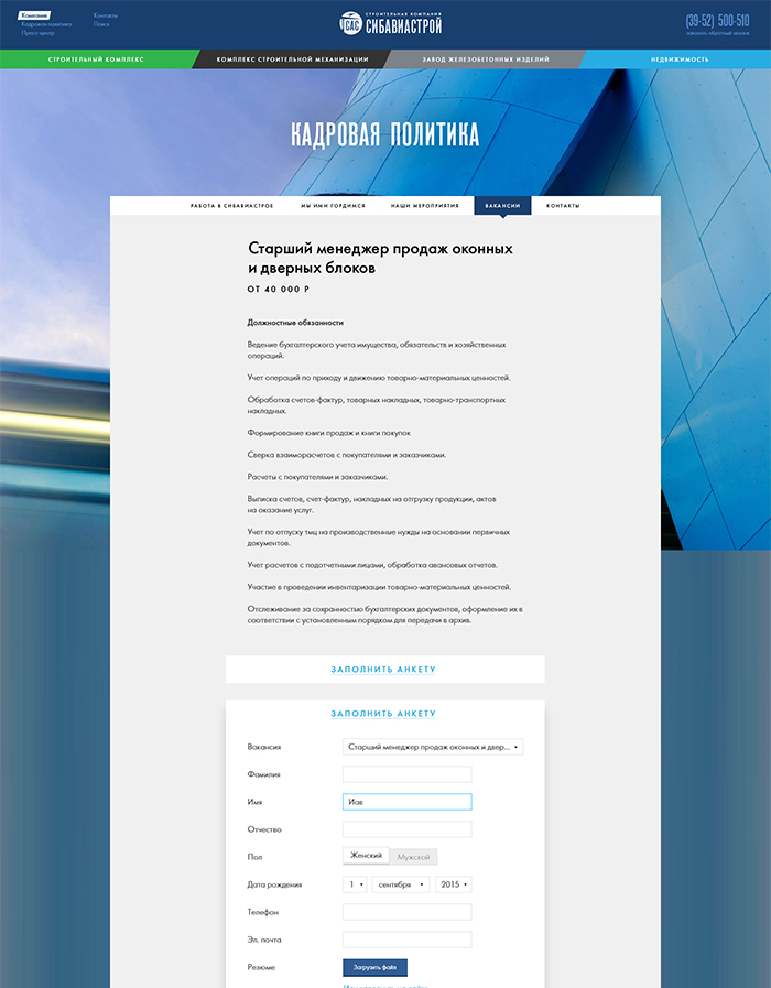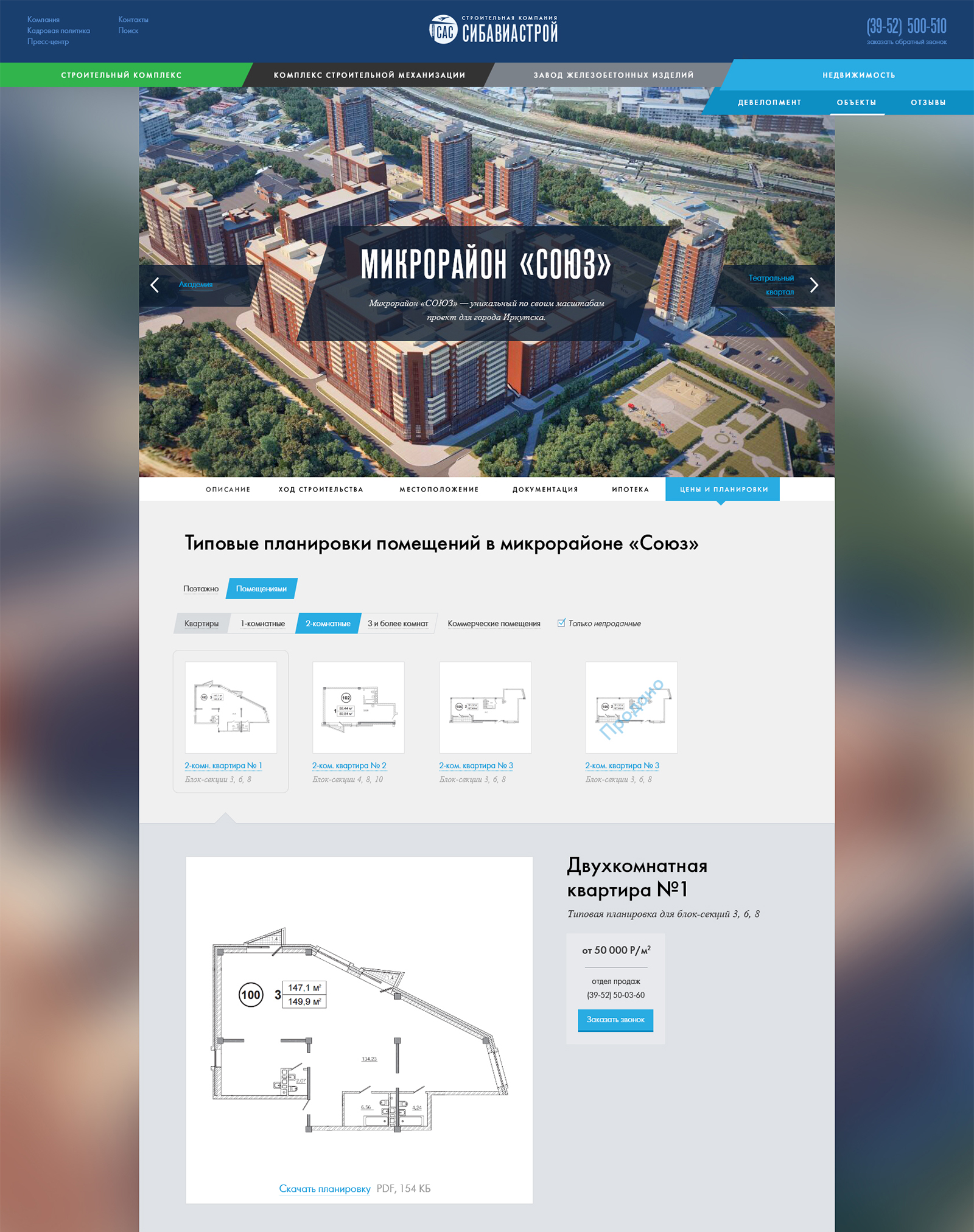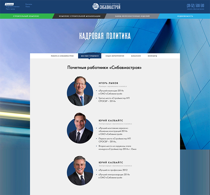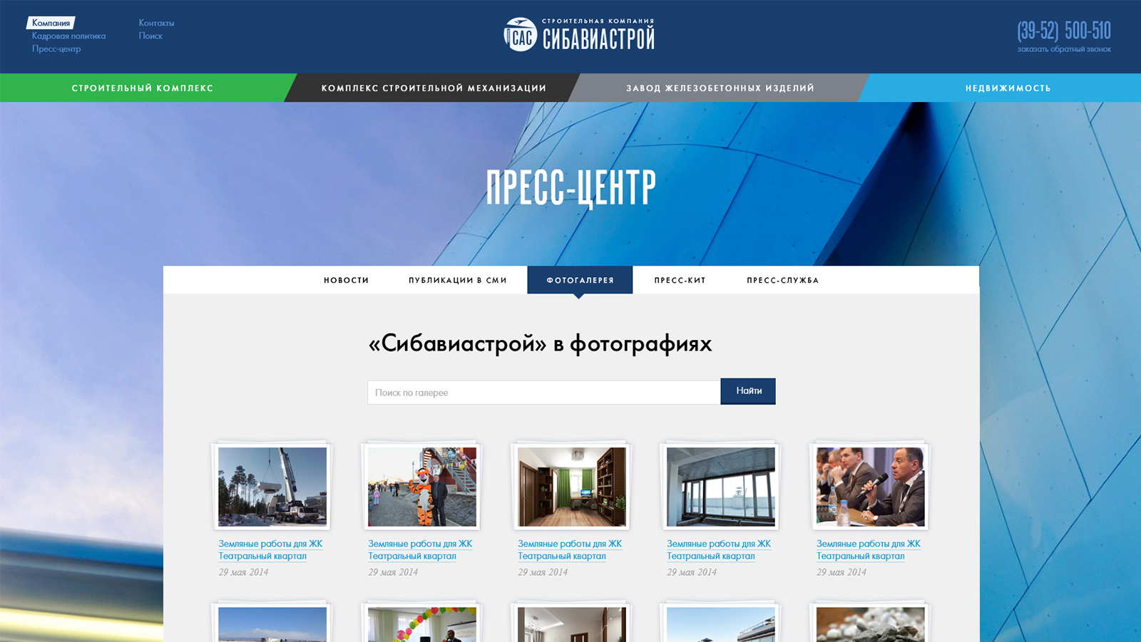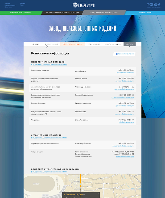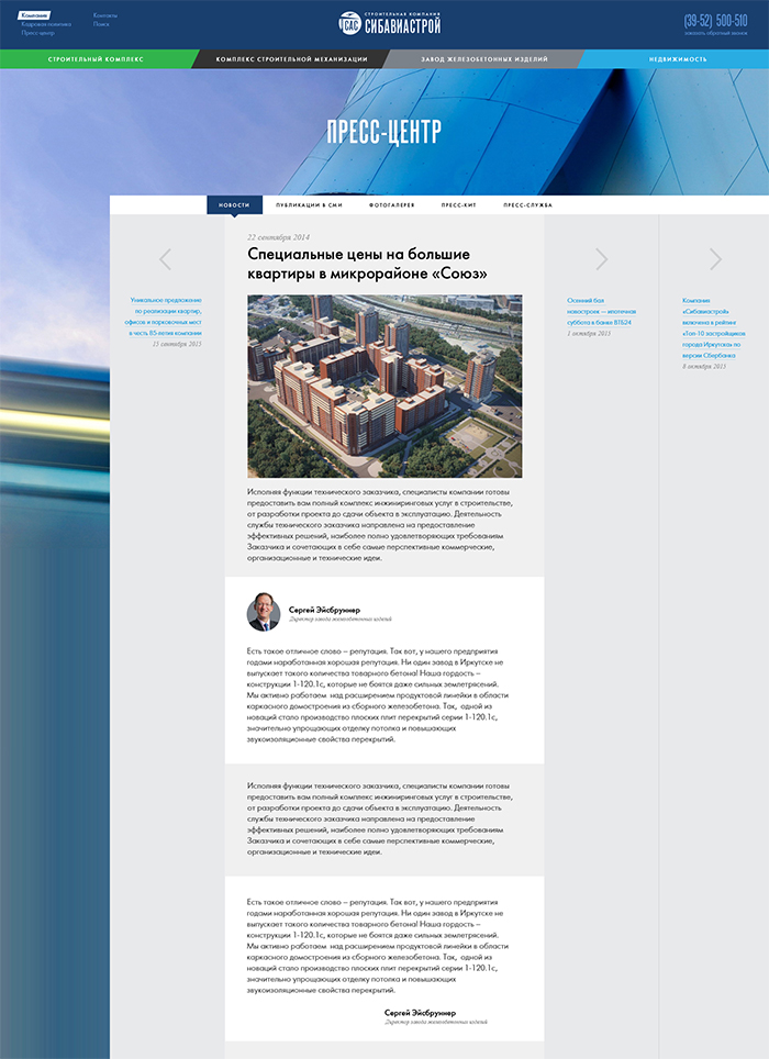 Корпоративный сайт промышленно-строительной компании «Сибавиастрой»