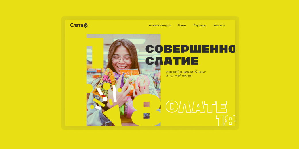 18 лет — возраст, в котором всё можно. Яркий, современный, молодой, дерзкий, осознанный - это характеристики, которые вошли в основу дизайн-концепции квеста. Нужно было привлечь молодое поколение к бренду, для этого мы использовали громкие заголовки, яркие цвета и акцентную типографику с заливкой и контурами, чтобы задать праздничное настроение.