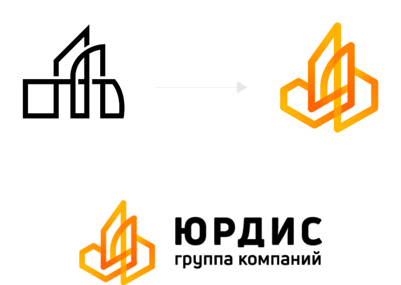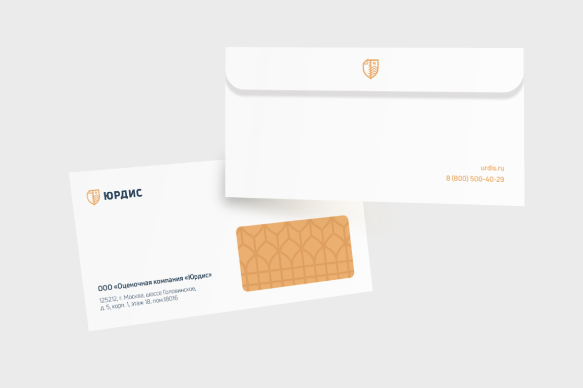 Компания «Юрдис» обратилась к нам за разработкой фирменного стиля, уже имея некоторые элементы айдентики. Логотип компании был привязан к одному из направлений деятельности — оценке недвижимости и состоял из тонких абстрактных линий, что плохо отражалось на читаемости символа.