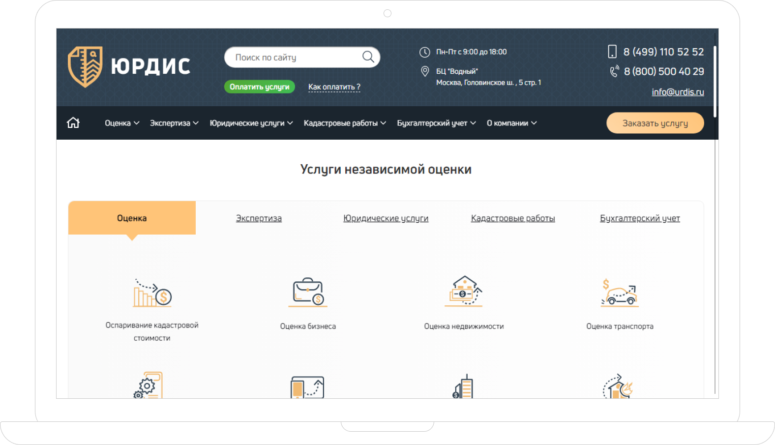 По гайду фирстиля клиент также обновил дизайн сайта компании Юрдис. Так, с минимальными затратами получился с более солидным дизайном и упорядоченной подачей информации, благодаря правильно примененным элементам фирменного стиля.