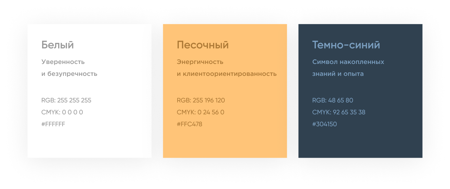 Цвета были подобраны с учетом придания образу спокойного и уверенного тона. Использованы классические, благородные оттенки:
